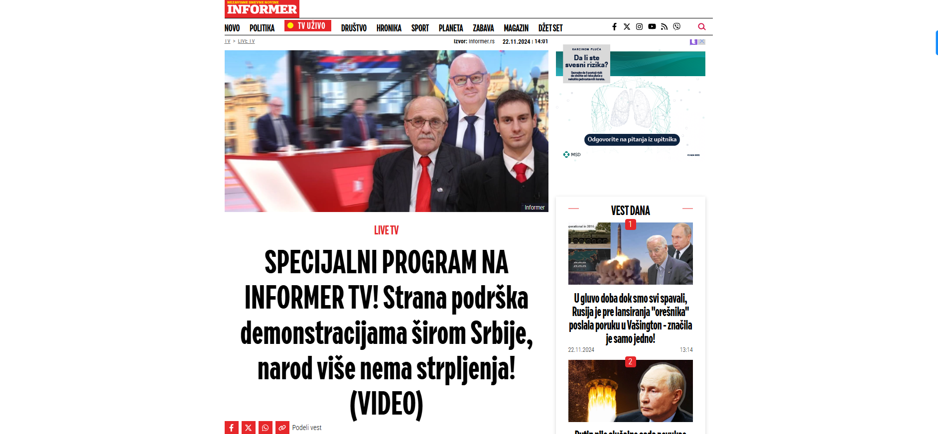 СПЕЦИЈАЛНИ ПРОГРАМ НА ИНФОРМЕР ТВ!